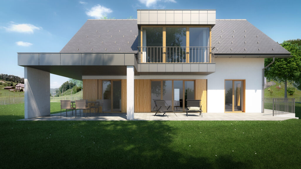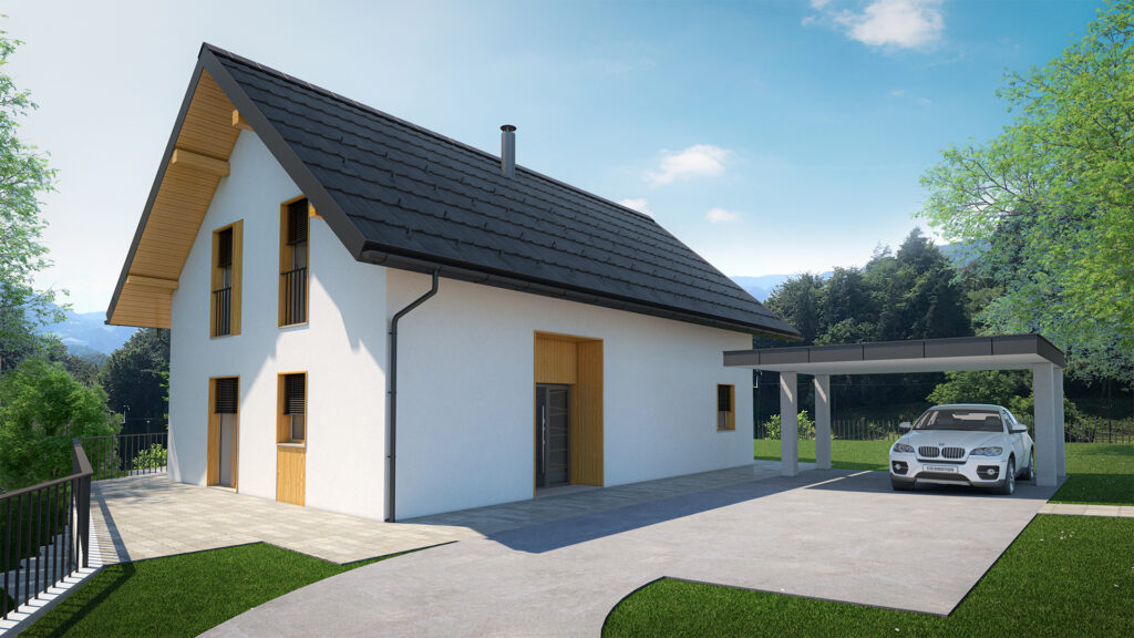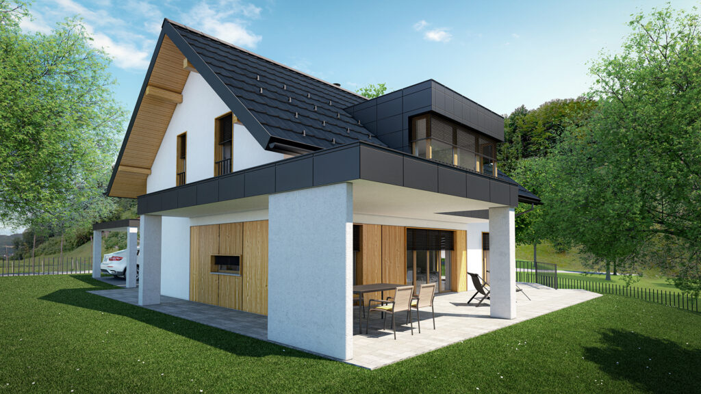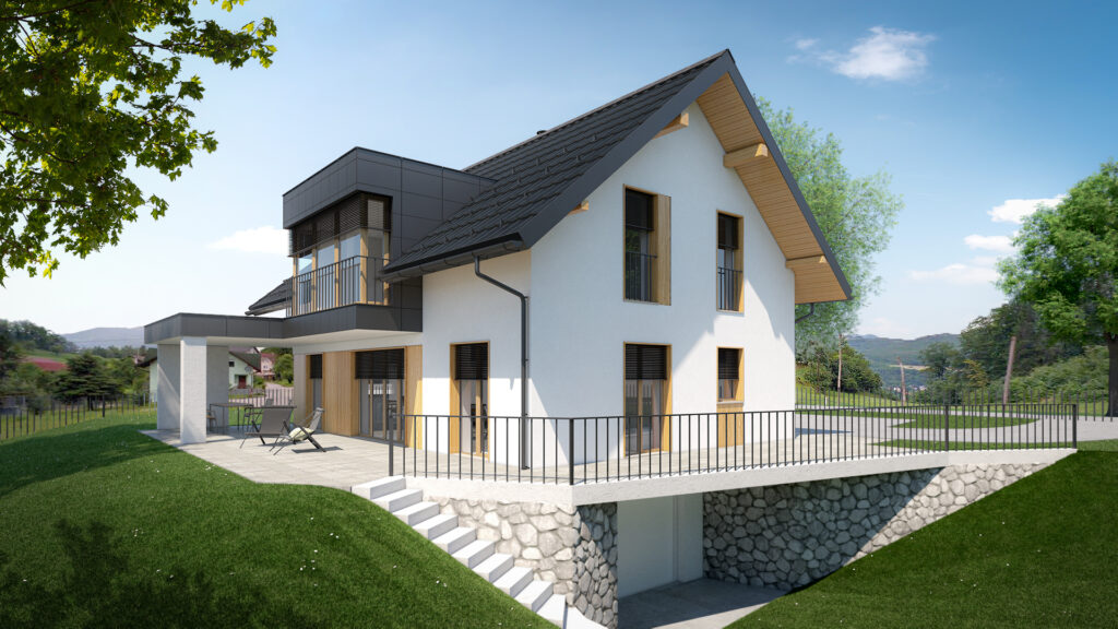 vizualizacija vizualizacija vizualizacija vizualizacija Hiša Č Projekt je zasnovan kot enodružinska hiša na jasi na obrobju vasi. Vizualizacije za projekt je izdelal Gregor Blaj.
